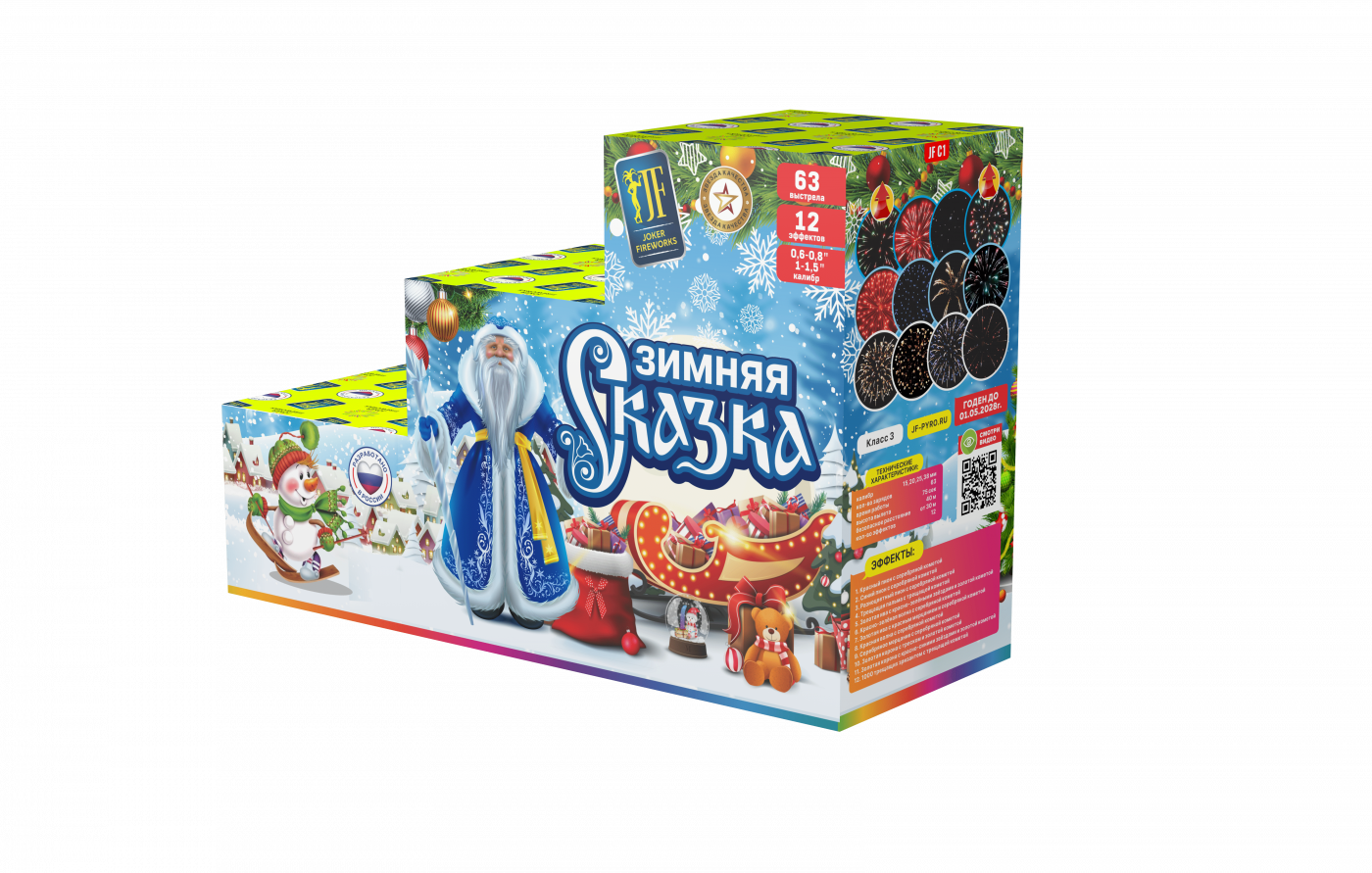 🎇✨ **«Зимняя Сказка» от Joker Fireworks — волшебство праздника у вас дома!** 🌟 Представляем яркую батарею салютов «Зимняя Сказка», которая подарит вам незабываемые впечатления! ⭐️ 🔥 Ультраяркие вспышки четырёх калибров (от 0,6" до 1,5") создадут феерию света! ⏳ Длительность фейерверка – целых 75 секунд ✅, высота полёта снарядов достигает 45 метров 🚀! 📍 Уникальная комбинация из тринадцати спецэффектов трёх уровней со звуком треска подарят настоящий праздник вашему взору и слуху 💣. Сделайте свой вечер особенным вместе с «Зимней Сказкой»! 👁🗨