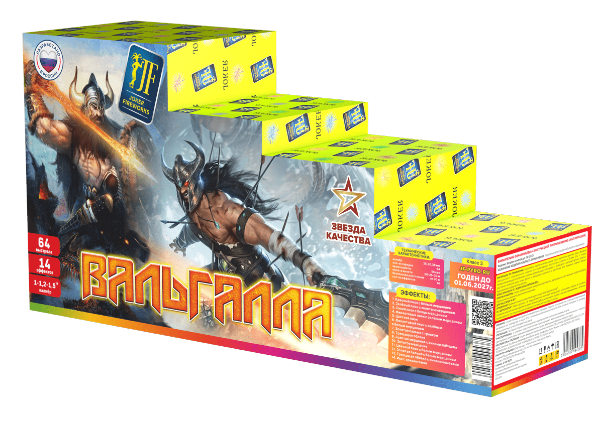 🌟 Погрузитесь в магию праздника с фейерверком 🎆✨ "Вальгалла JF C6" от Joker Fireworks! 🌟 Калибры ✅ 1", 1.2", 1.5". Создайте незабываемое световое представление ⏳ длительностью 55 секунд, включающее три уровня запуска и 🔝 + 14 ослепительных спецэффектов. 🚀 Высота залпов — до 45 м! Хватит мечтать о красочных праздниках — создайте их сами с легендарной серией батарей салютов «Вальгалла». Отзывы говорят сами за себя – ваш идеальный выбор уже здесь!💥👍