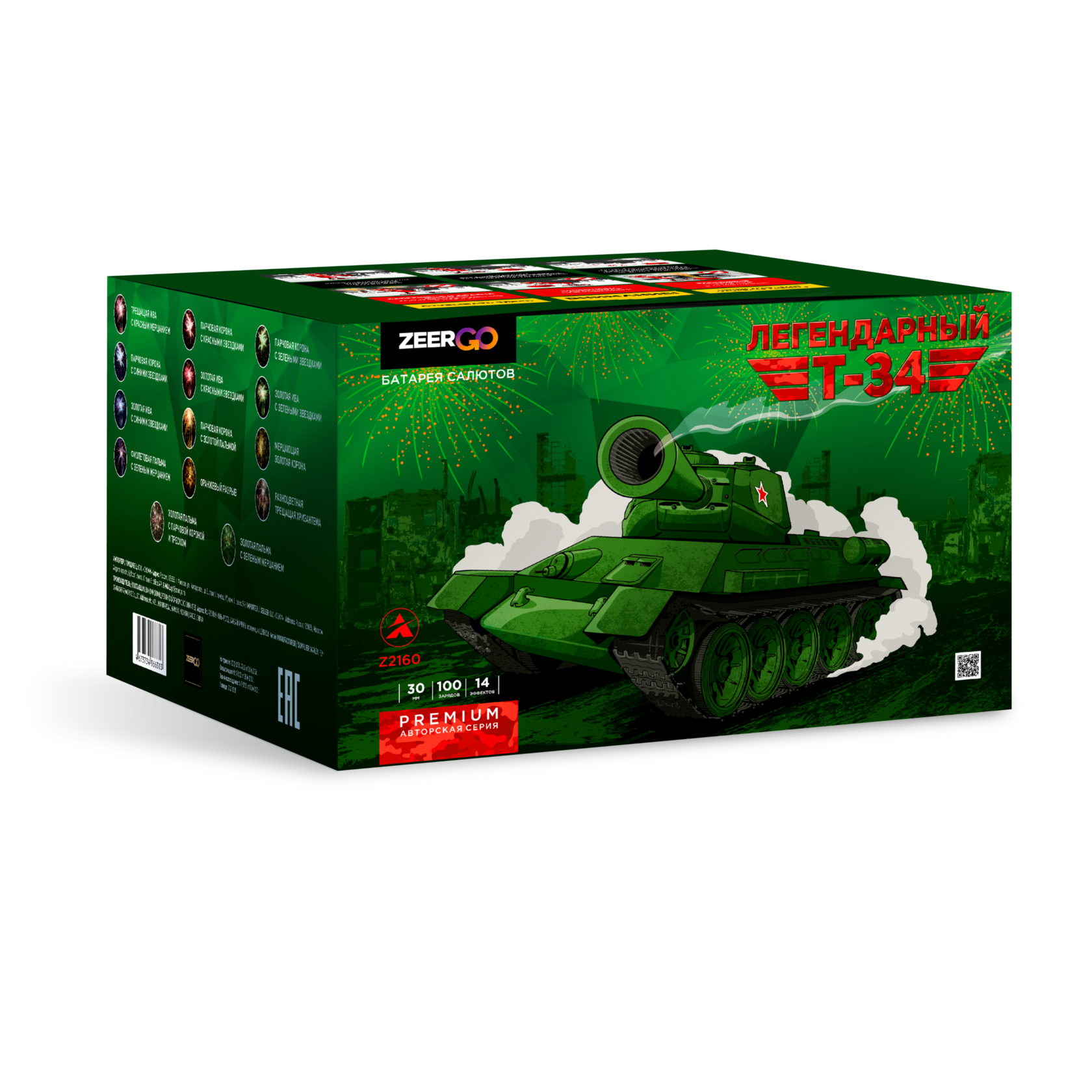 🎆 Откройте легендарную страницу фейерверков вместе с «Т-34» от Zeergo! 💥 ✨ Ваш праздник озарится яркими вспышками – целых 100 эффектных залпов взмоют вверх почти на 30 метров! ⏳ Продолжительность шоу около минуты — достаточно времени, чтобы насладиться каждым моментом ✅ 🔥 В арсенале этой батареи множество спецэффектов и даже треск, усиливающий атмосферу праздника 🌟 Выбор профессионалов и любителей ярких эмоций – это хит продаж среди наших клиентов! Не упустите шанс сделать ваш вечер незабываемым!
