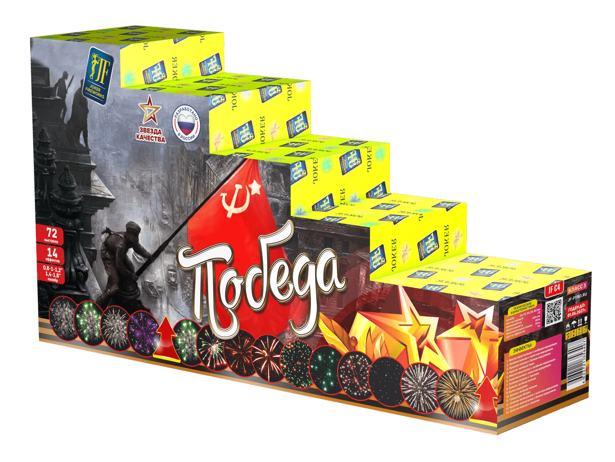 🎇✨ Салютная установка «Победа» от бренда Joker Fireworks — ваш ключ к незабываемому празднику! 🌟 ⭐️ Высокое качество запуска до высоты 50 метров ⚡ 🔥 Ультраяркие залпы калибром от 0.8" до 1.6", эффектное шоу продолжительностью целых 120 секунд ✨ 💣 10 уникальных пиротехнических эффектов + дополнительный треск для усиления впечатлений 🤩 Подарите себе и близким фейерверк эмоций всего одним нажатием кнопки! 🎆