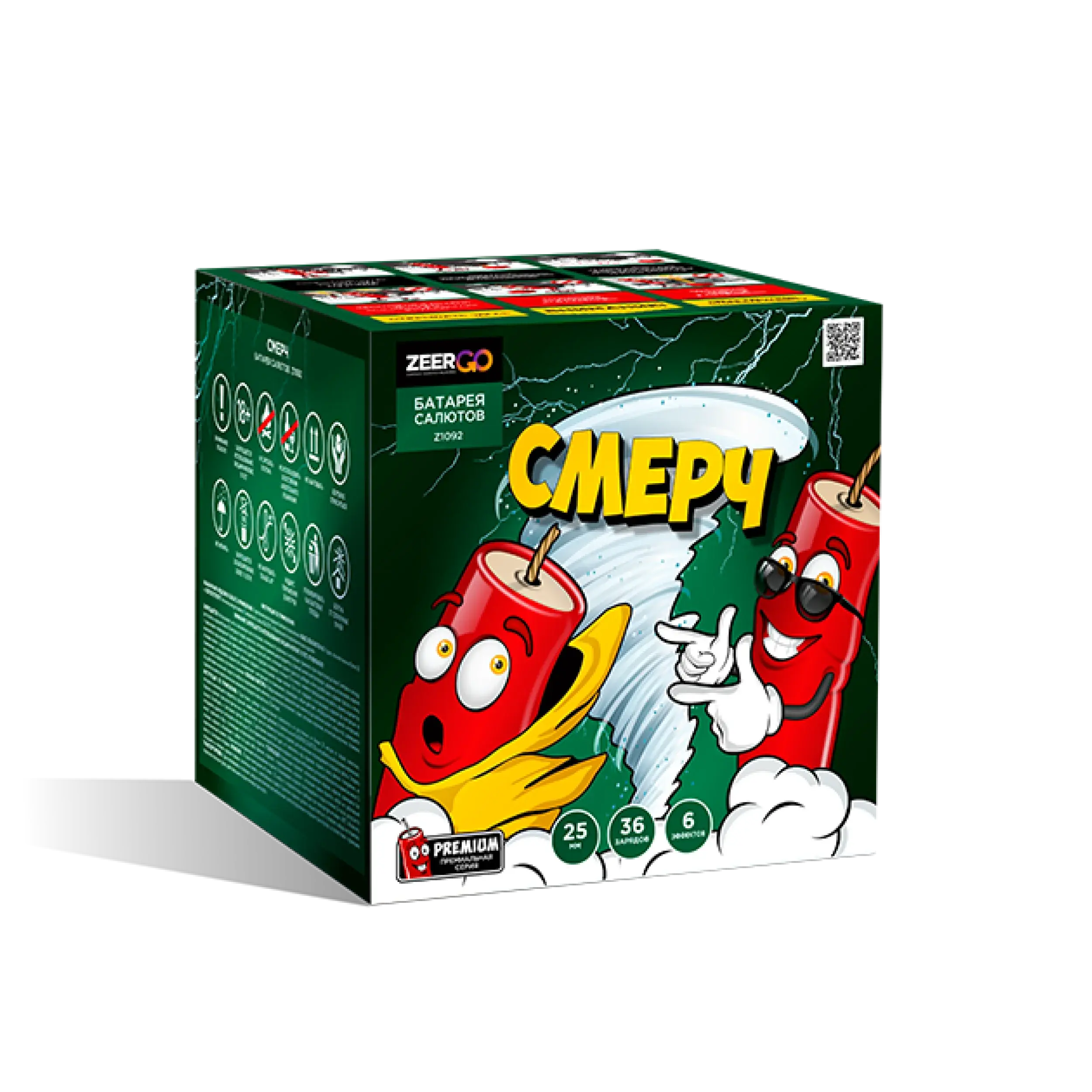🎇✨ Подарите своим близким незабываемые впечатления от фейерверка «Смерч»! 🌟 Batterie Zeergo – это взрыв ярких эмоций высотой до 25 метров ✨⚡️! Всего 36 секунд, а кажется вечность волшебства 💫... калибр 1", шесть потрясающих спецэффектов + треск 🔥🤩! Идеально подходит как финальный аккорд любого праздника 🍾👯♂️. Не упусти шанс стать звездой вечера вместе с нами! 👏