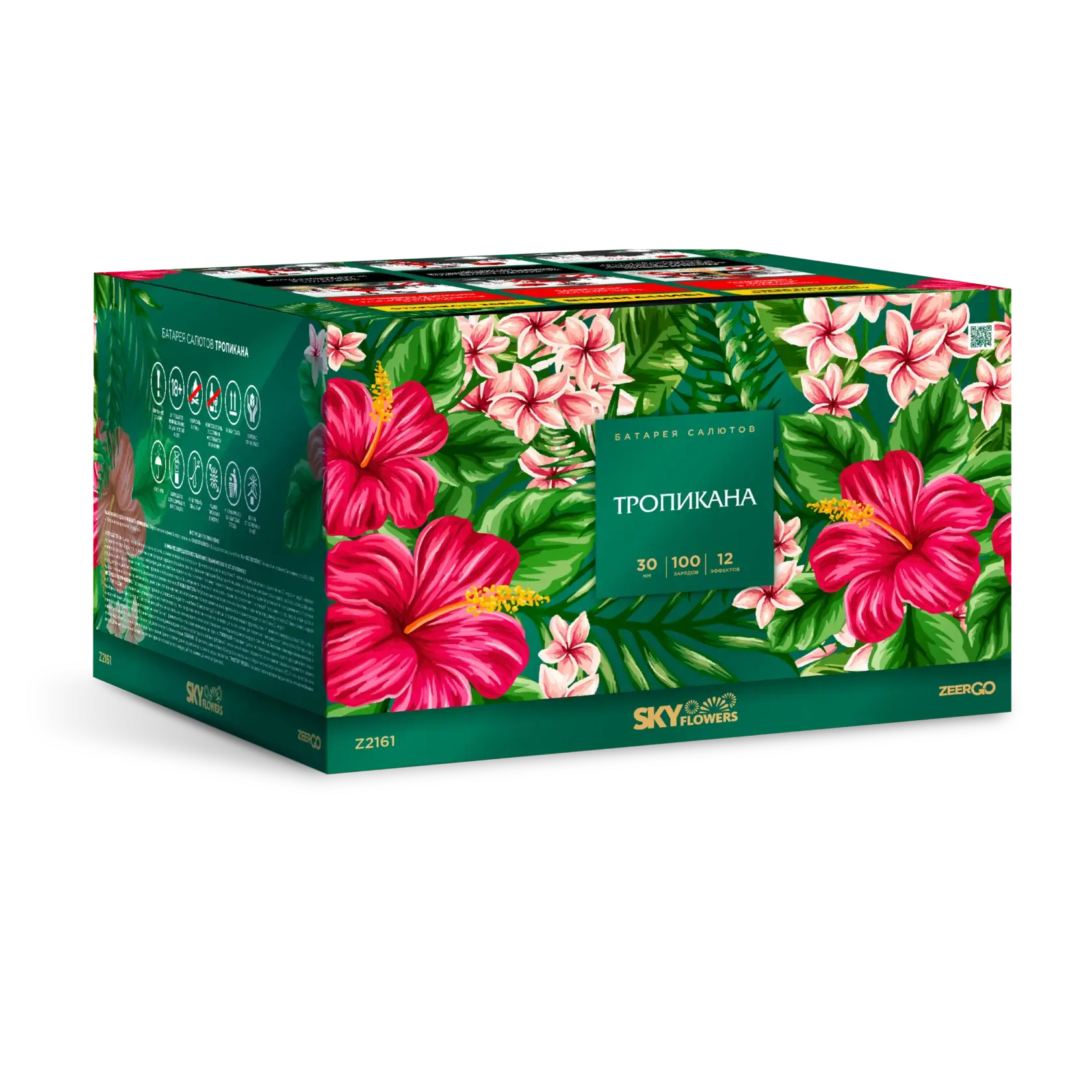 🎇✨ Откройте незабываемый фейерверк праздника вместе с батареей салютов «Тропикана» от бренда ZEERGO! 🌟 Этот праздничный набор подарит вам целых 100 огненных залпов ⭐️ высотой до 30 метров ✈️, которые будут радовать вас 87 секунд непрерывного волшебства 🪄! Двенадцать ярких спецэффектов сделают ваш вечер особенным 💥👏. Приятно удивите близких и друзей этим великолепным зрелищем! ✨