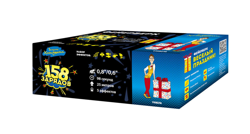 🎇✨ Праздничный фейерверк «Веселый праздник» от бренда Урал Салют — идеальное решение для яркого торжества! 🌈 🔥 Яркие вспышки пяти разных эффектов (включая свист и треск), высота до 20 метров ✨, длительность шоу – около 105 секунд ⏳— Всего 158 эффектных залпов калибра 0,6 и 0,8 мм сделают ваш вечер незабываемым! 💣 Подарите близким море эмоций вместе с этим потрясающим пиротехническим представлением! 🎆