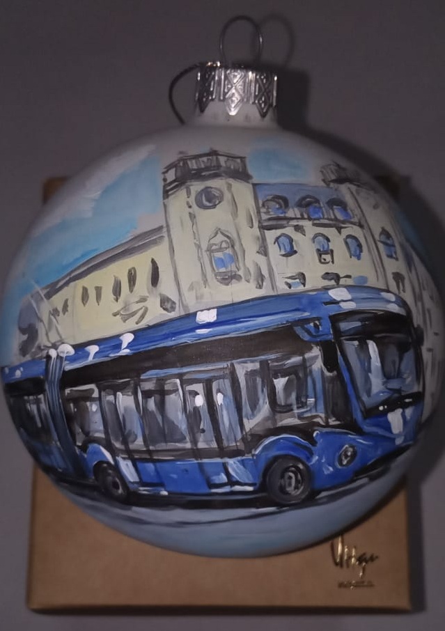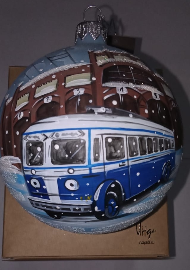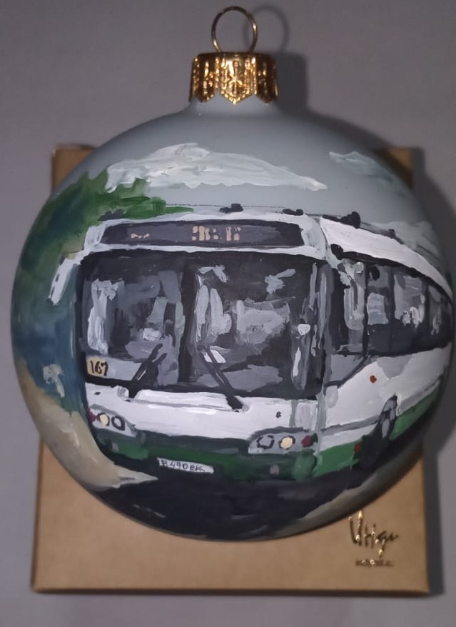 Уникальный подарочный стеклянный ёлочный шарик Автобус 167 с ручной росписью!