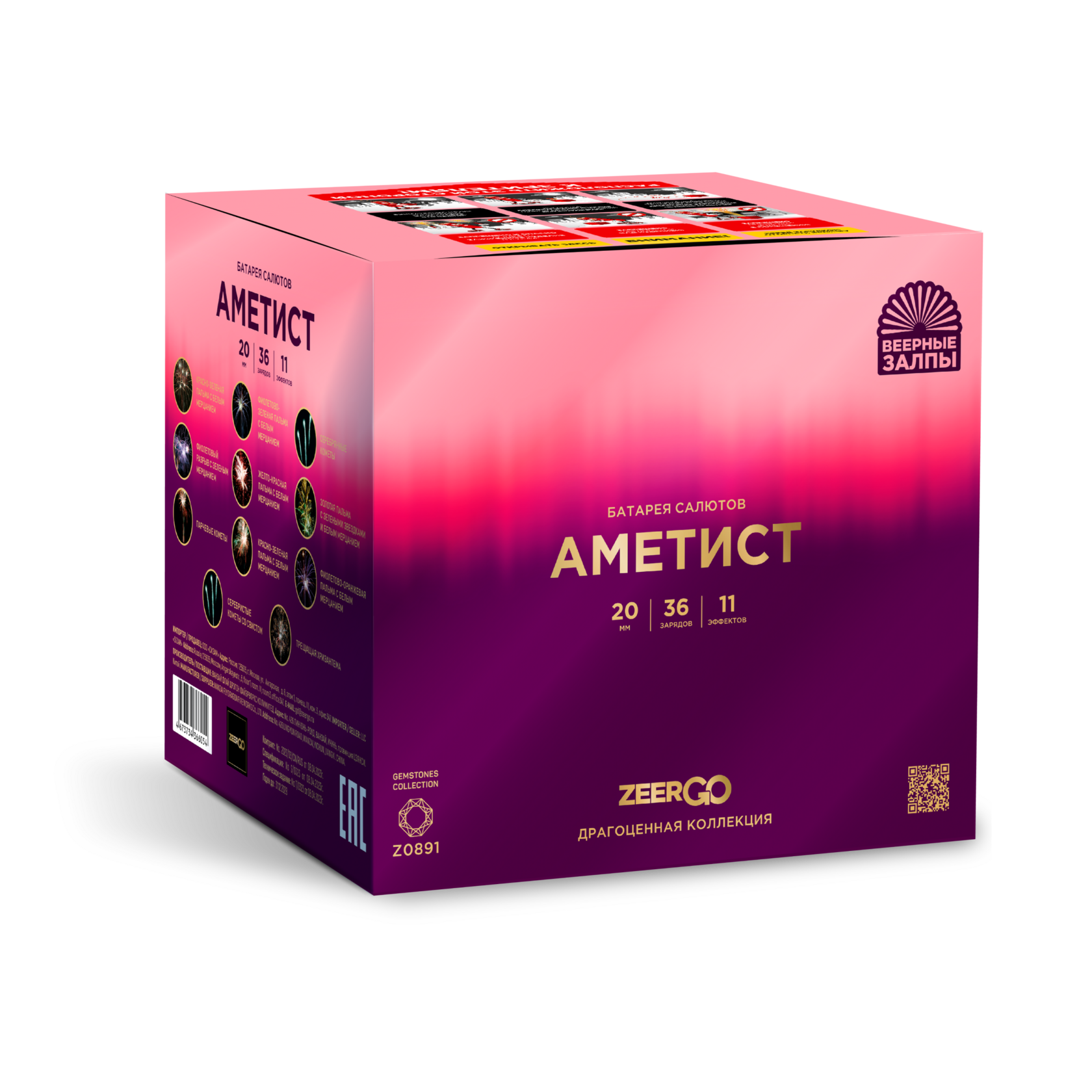 🎇✨ Откройте волшебство праздника вместе с батареей салютов «Аметист Веер» от бренда Zeergo! ⭐️ Представляем вам фейерверк высотой до 25 метров 🚀 со 11 потрясающими эффектами ✨ , включающий треск 💥 и свечение 🌟 . Длительность представления — целых 31 секунду 😍! Всего лишь один запуск позволит насладиться красочным шоу из 36 ярких залпов 🌈 и удивить ваших гостей незабываемыми впечатлениями 🤩!
