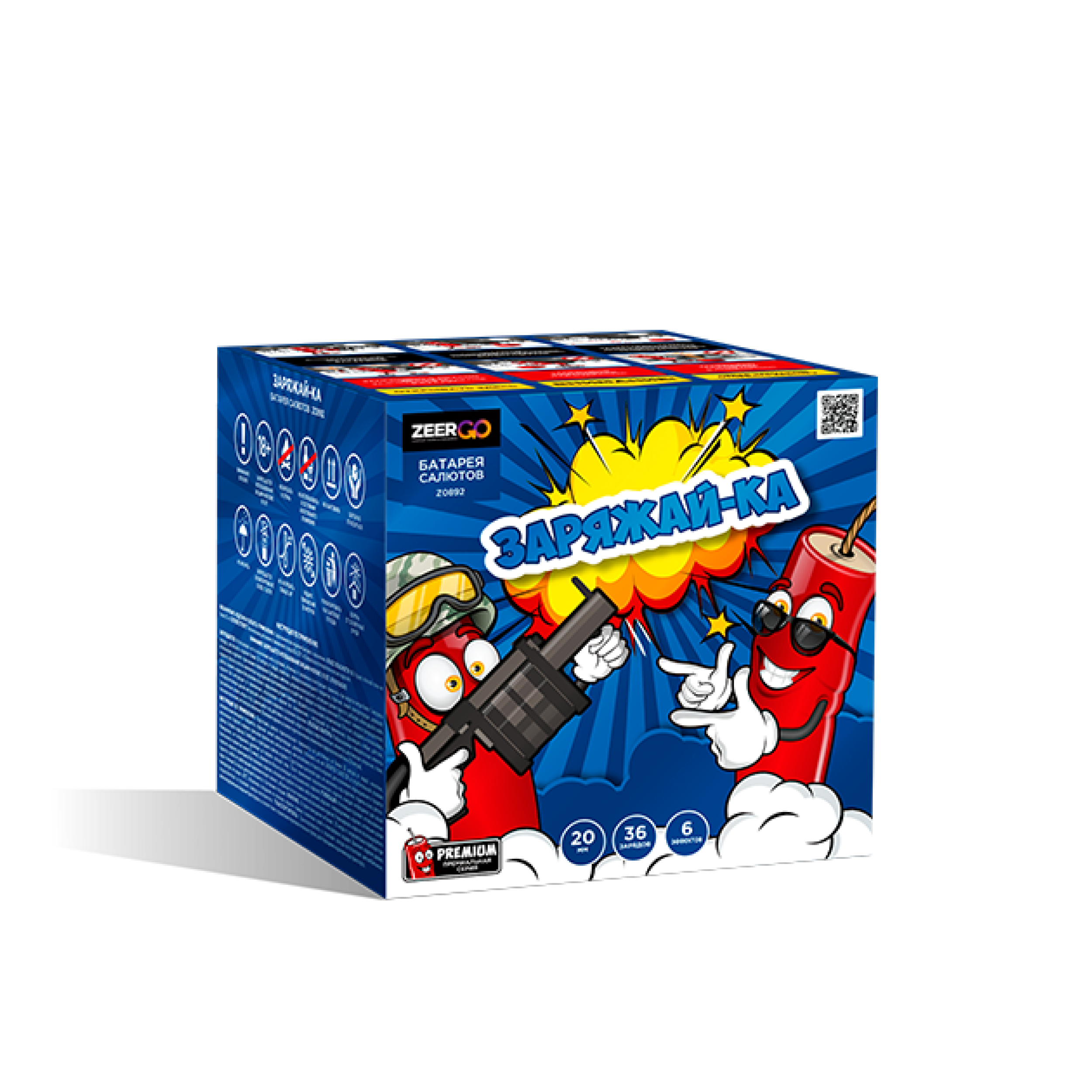 🎇✨ Встречайте волшебство ночи вместе с батареей салютов «Заряжай-ка» от бренда ZEERGO! 🌟 Представляем вам незабываемое шоу из 36 ярких залпов ⭐️🔥 высотой до 25 метров, которое продлится целых 40 секунд ✨☃️! Эффект треска добавит особую атмосферу праздника 💣⚡️, а разнообразие цветов и форм фейерверков поразят ваше воображение 🤩🍿. Создайте сказку своими руками – выберите «Заряжай-ка» и подарите близким яркие эмоции 🖼️❤️!